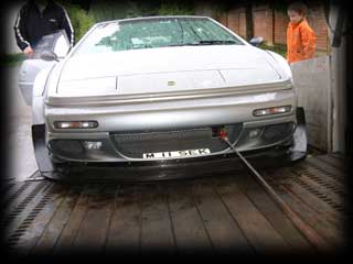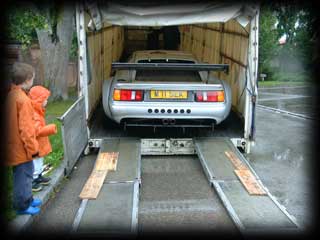The job of collecting the car was given to a Company called ´On Time´. They dispatched a specialised car transporter, but unfortunately, the car could not be loaded due to problems with the ramp angle. Despite attempts to aid the loading with long planks etc, the collection was abandoned.